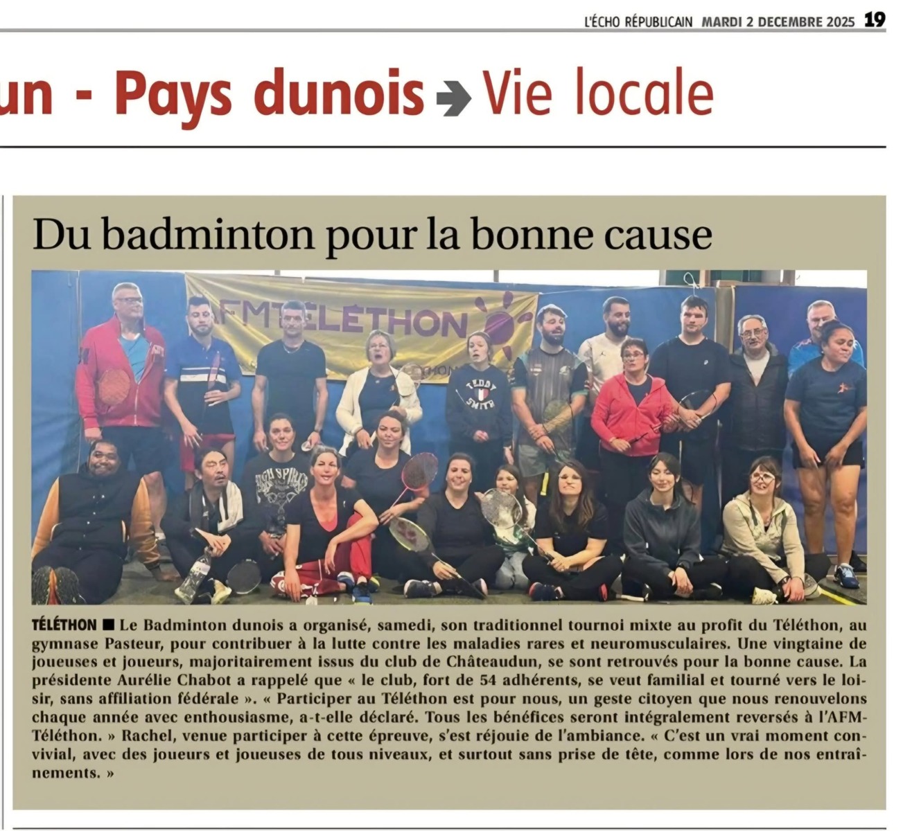 Nous tenons à remercier chaleureusement tous nos adhérents, bénévoles et partenaires pour leur présence et leur engagement lors du Téléthon de ce samedi 26 novembre.
